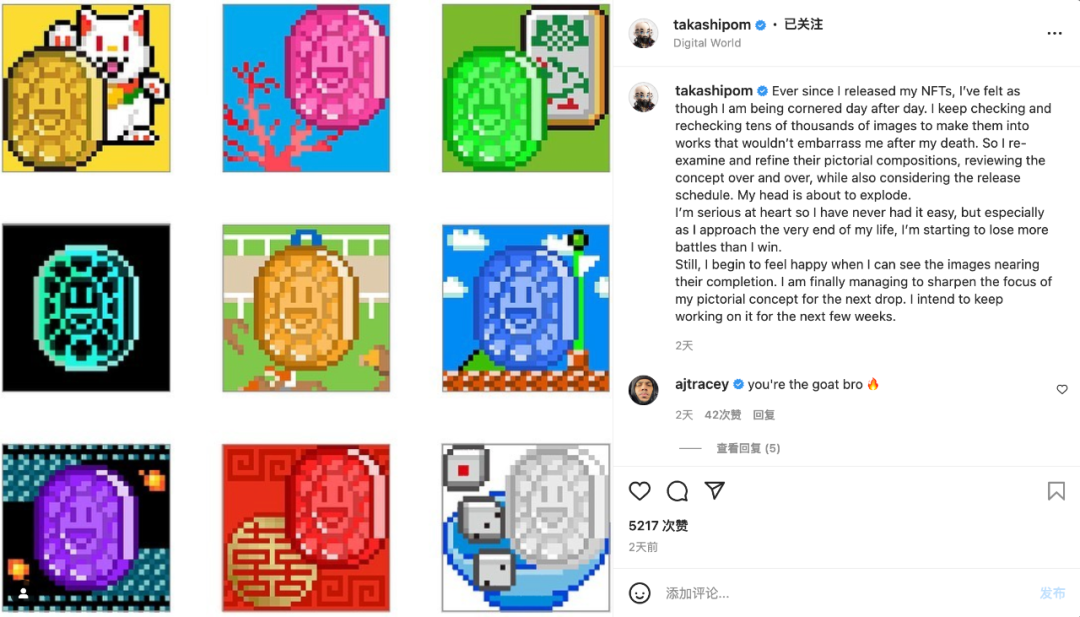 这一拍卖事件之后 , 我们对 NFT 的讨论和关注便没有停止过 , 许多艺术家如 杰夫·昆斯(Jeff Koons)、徐冰、蔡国强、村上隆(Murakami Takashi)、玛丽娜·阿布拉莫维奇(Vojin Abramović)等都纷纷介入这一领域 。
