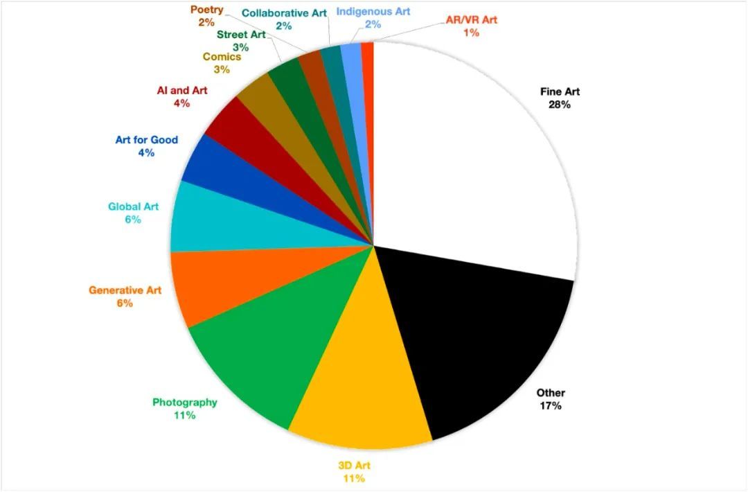 通过分析OpenSea平台上过去12个月(2021 年 5 月 26 日至 2022 年 5 月 26 日)每个类别(例如交易量、交易数或持有者数量)的数据,主办方NFT.NYC首先确定一定类别的获奖者,即“顶级类获奖项目”。而其他主观奖项,则是根据近两万名社区参与者的投票选出的。今年4月开始,NFT.NYC 向社区开放投票,评选“最具创新 NFT 项目”、“最佳 NFT 艺术家”、“最佳 NFT 市场”等奖项,奖项类别涵盖了从视觉艺术、游戏到时尚等30多个领域,其中,许多奖项的设立旨在表彰与众不同的媒体、区块链和行业。