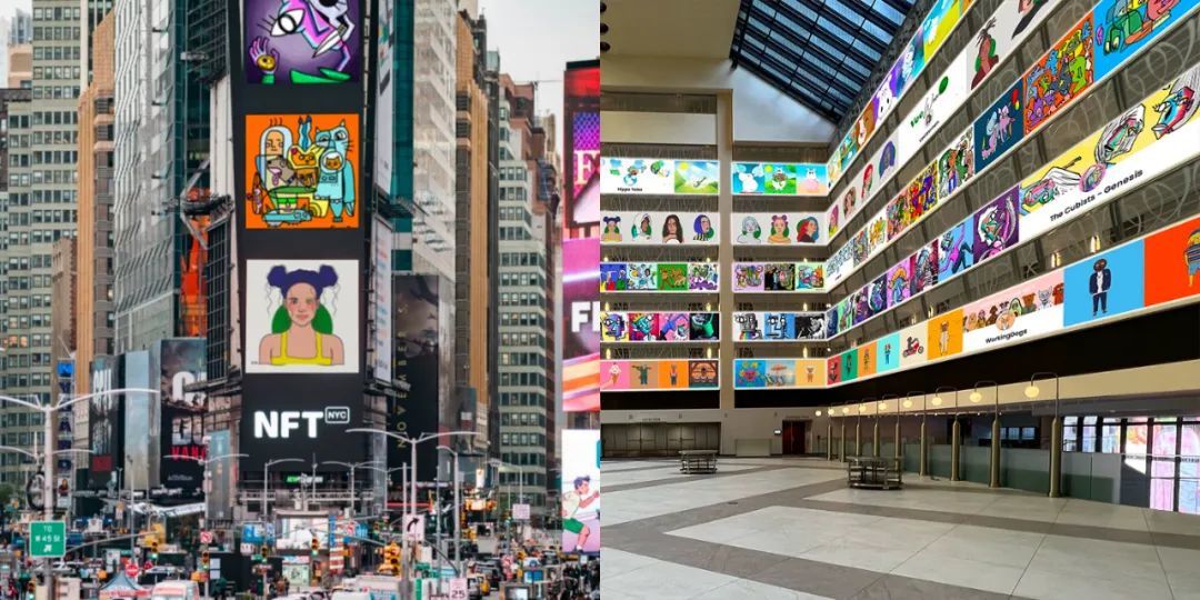 6月的纽约迎来了火热的盛夏,伴随着疫情之后的解封,丰富的艺术文化活动正在填满纽约的夏日,除了布莱恩特公园的草坪演出、翠贝卡电影节(Tribeca Film Festival)、总督岛复古派对、惠特尼双年展等,第四届 NFT 年度盛会也于6月20日-23日再次惊艳亮相纽约,观众不仅可以从纽约时代广场的公告牌上看到充满个性的 NFT 艺术创作,而且可以在马奎斯万豪酒店的画廊中观看最前沿的 NFT 艺术群展。