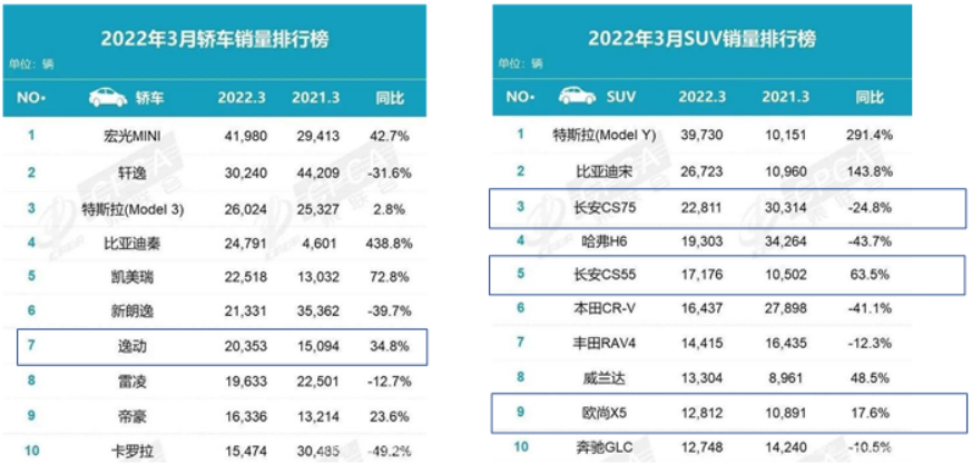 长安有一款轿车,三款SUV挤进了分车型销量排行榜的前10。长安逸动,能够跟俗称马路三大妈的“轩逸雷凌卡罗拉”并列,SUV长安CS75销量力压一代神车哈弗H6,这比王宝强拿到奥斯卡最佳男主角给我的冲击还要大。
