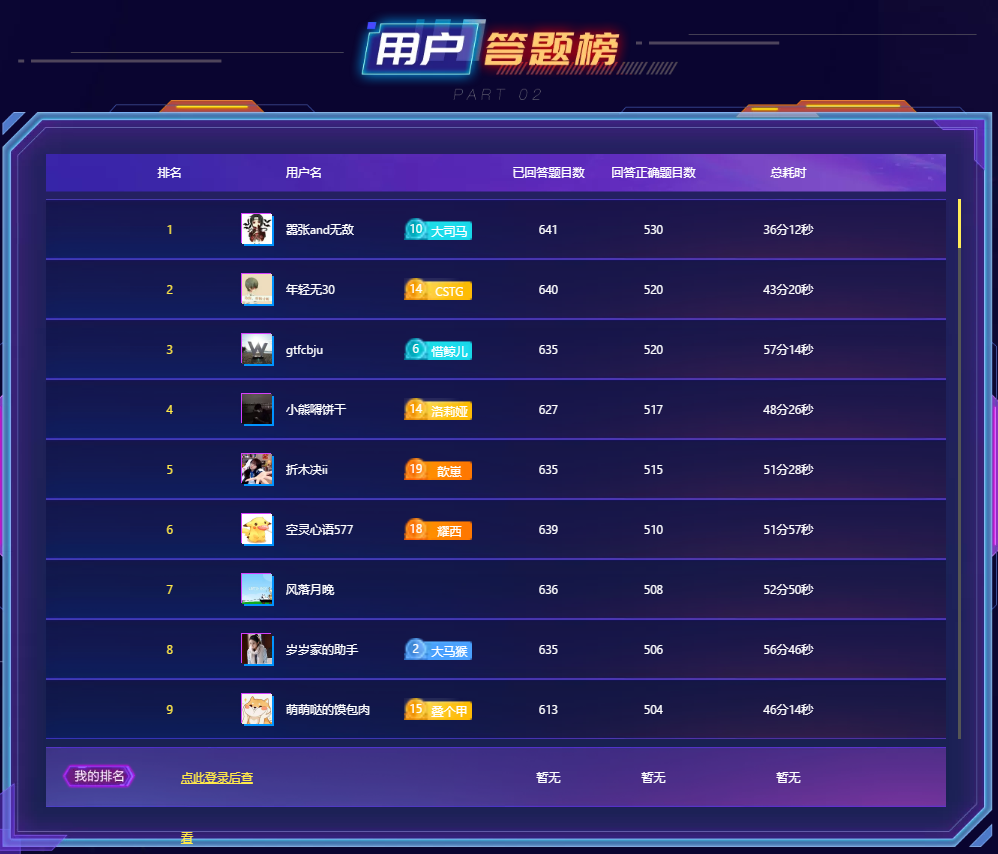 不知道大家发现没有,不仅有主播榜单还有用户榜单,我看了下在线用户答题榜,第一名真的强,总答对530题,总耗时也才36分12秒,直接和第二名拉开7分钟的差距,他还挂着马老师的10级牌子,这说明看马老师直播是能学到知识的,反正就是马老师的直播要知识有知识,要技术有知识,懂我意思吧?还有水友说到:和其他人差距越来越小,只有和榜一差距越来越大,榜一大哥的这波操作帮马老师狠狠的拿捏住了!