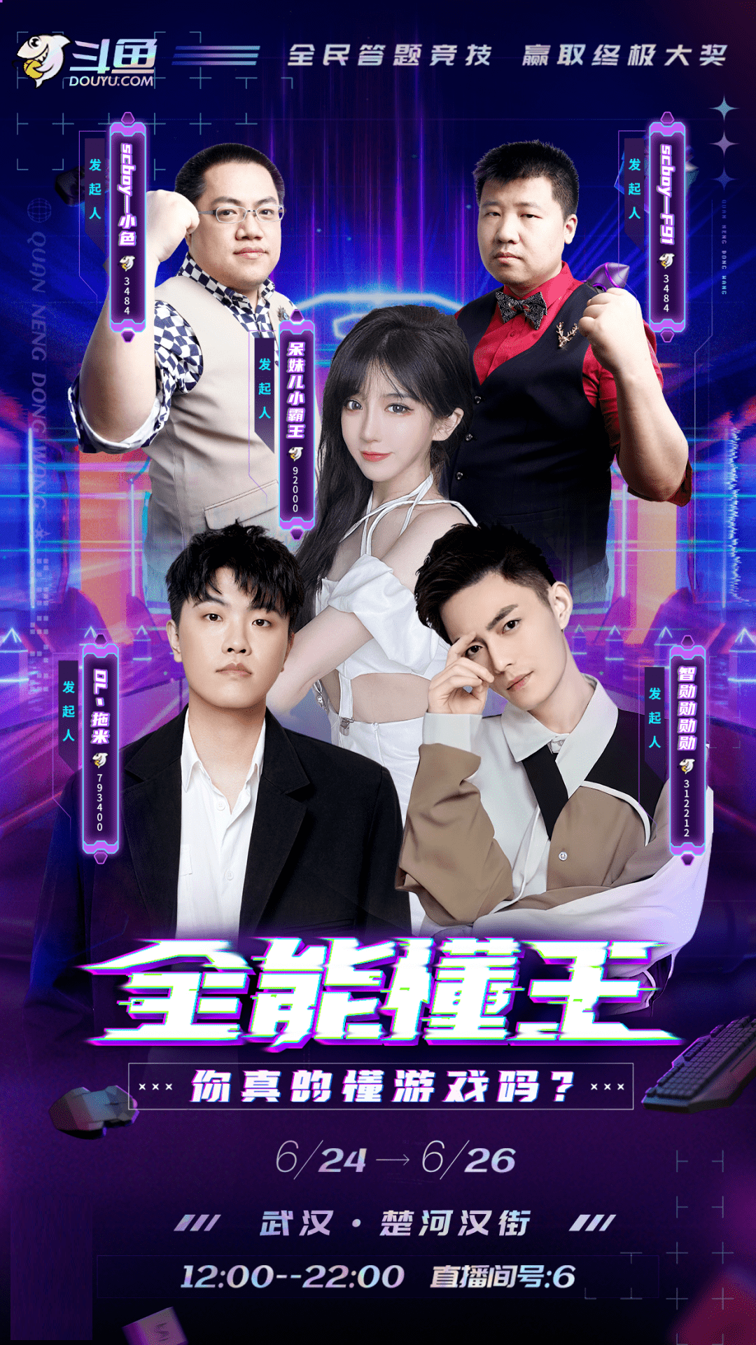 热爱游戏的武汉伢抓紧周末的尾巴,去打卡斗鱼官方在楚河汉街昭君广场举办的直播综艺《全能懂王》吧!这是一场全民参与类互动答题节目,聚焦各种热点游戏和电竞赛事,这不妥妥的游戏界的《一站到底》吗!《全能懂王》今天即将收官,作为一场全民知识竞赛的节目,除了可以线下参与,线上观众可以在斗鱼6号直播间参与同步答题,冲击排行榜,排名前100名的水友均有奖励。