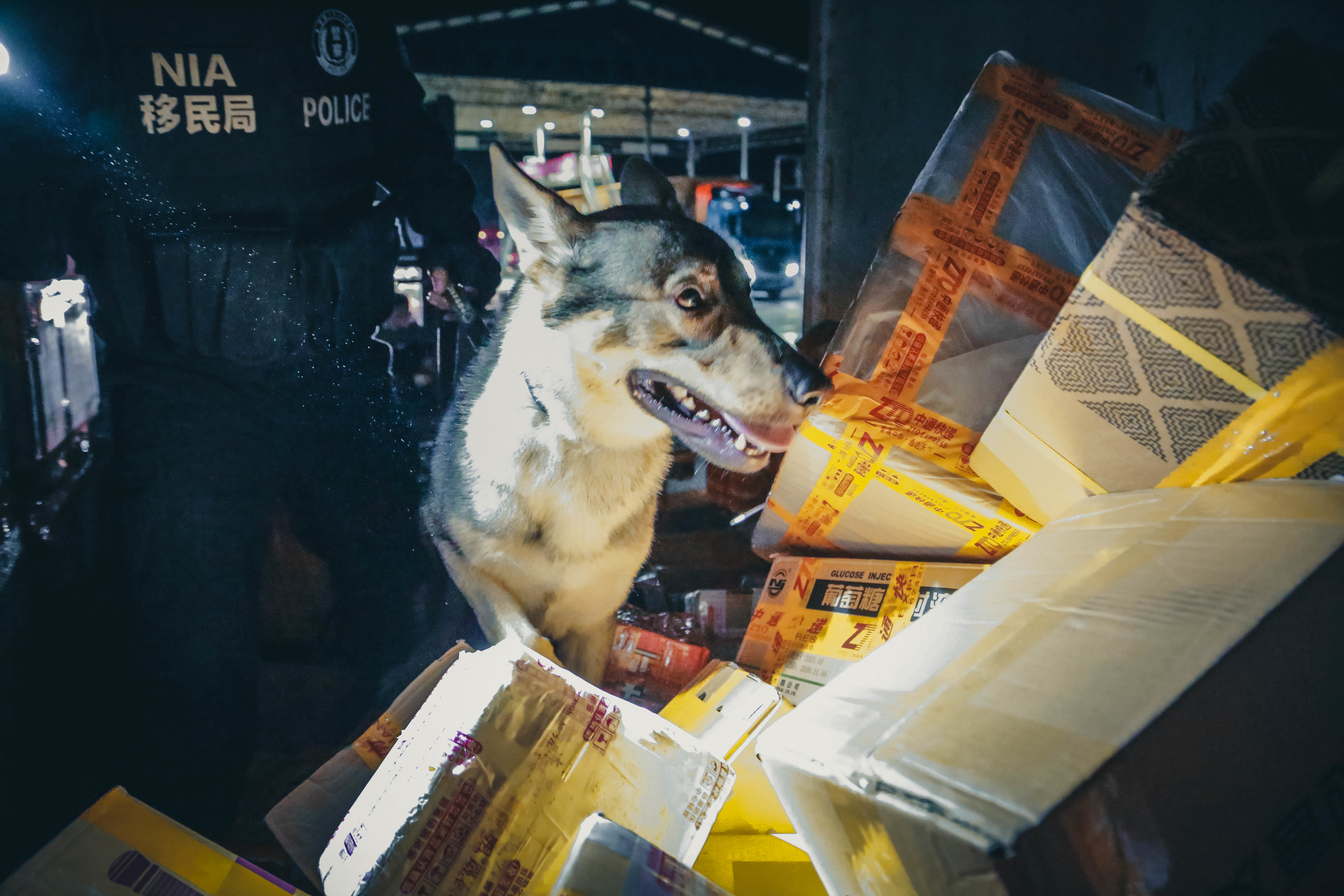 2021年6月2日,云南西双版纳边境管理支队大开河边境检查站警犬“飓风”在对快递车进行检查时,对一个包裹狂吠不止。驯导员对包裹进行开箱检查,查获利用咖啡盒伪装的毒品冰毒5坨,总重835克。图 / 大开河边境支队