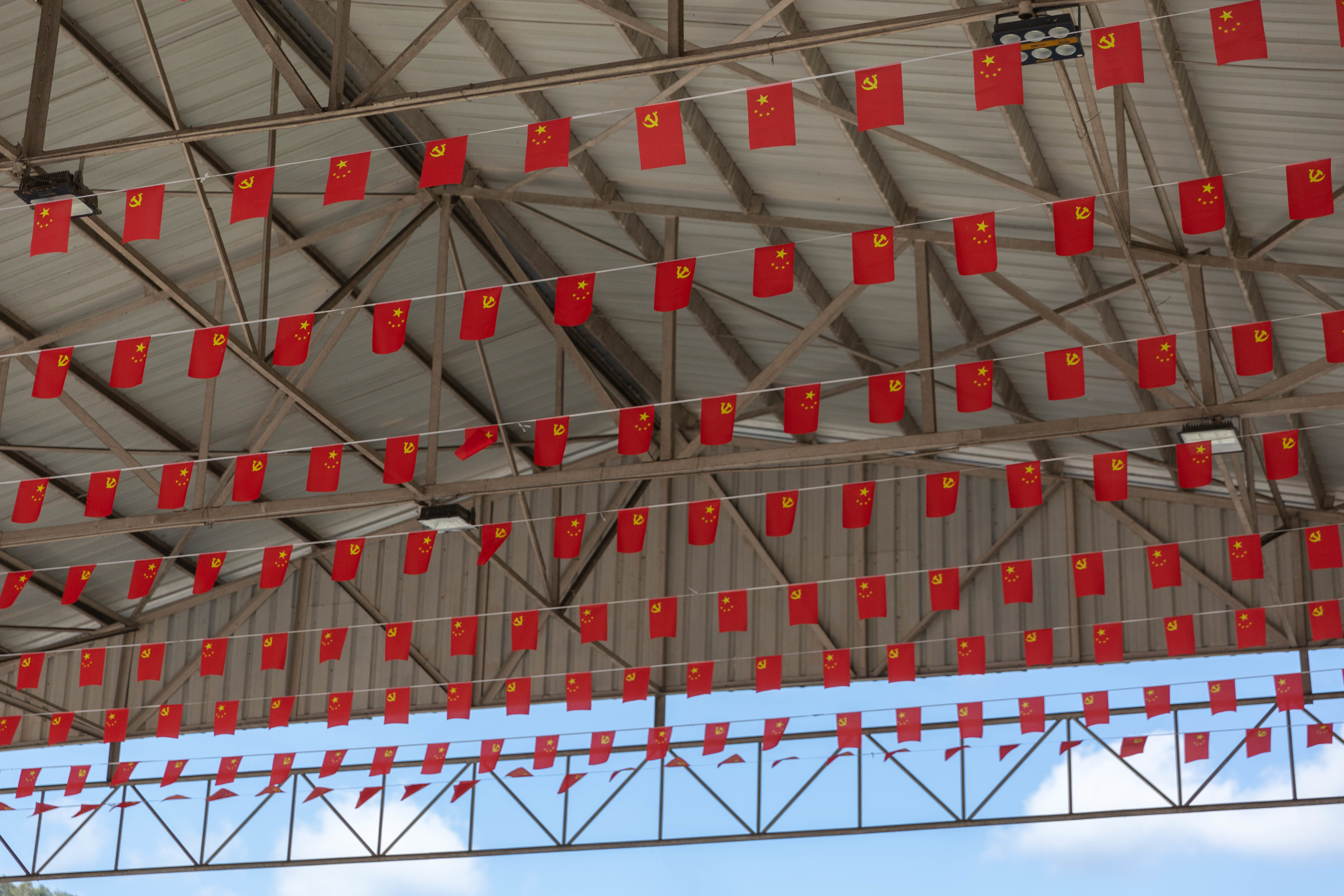 2021年12月20日,云南西双版纳边境管理支队大开河边境检查站,站内挂着国旗与党旗。