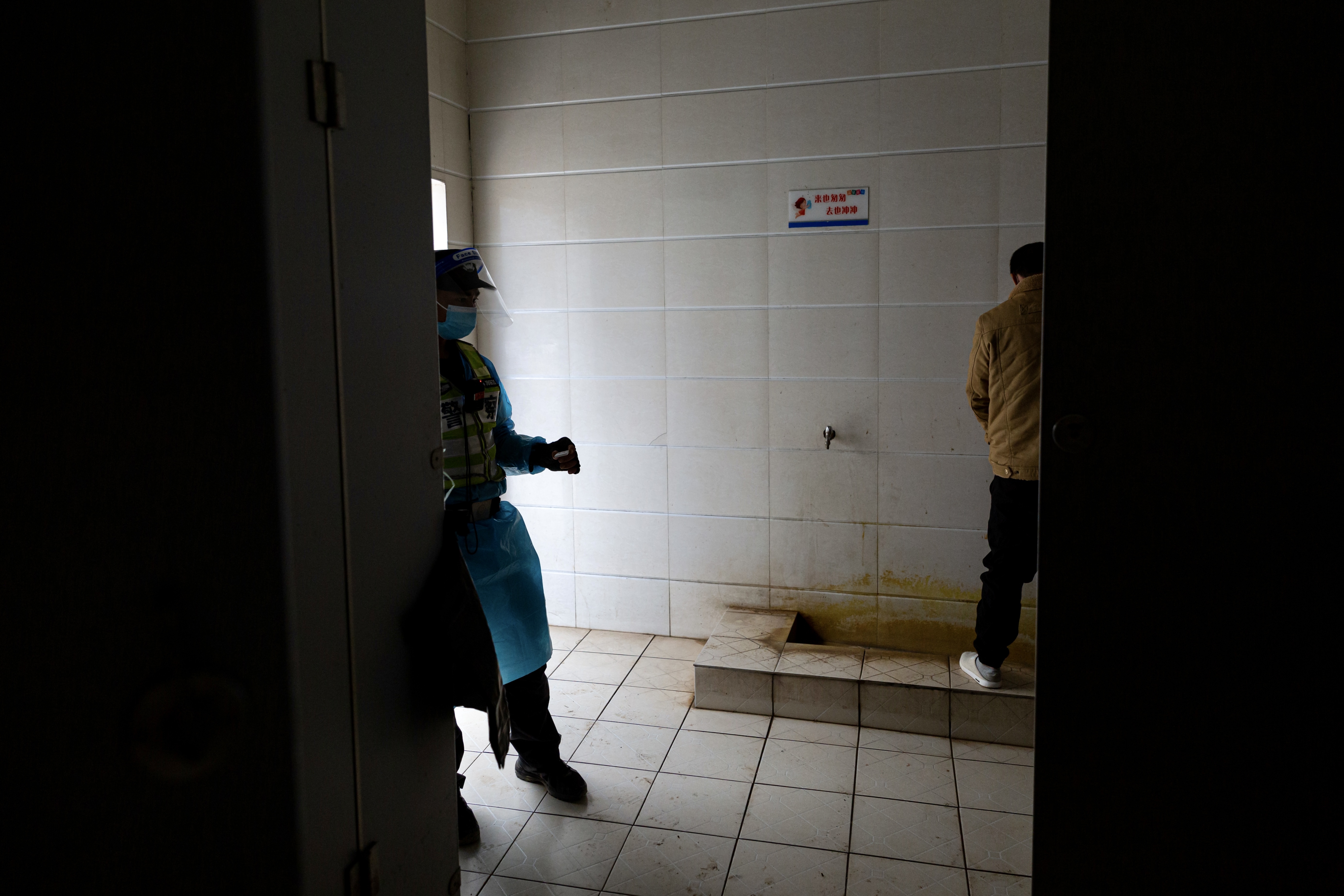 2021年12月20日,云南西双版纳边境管理支队大开河边境检查站,民警们对可疑人员进行尿检。
