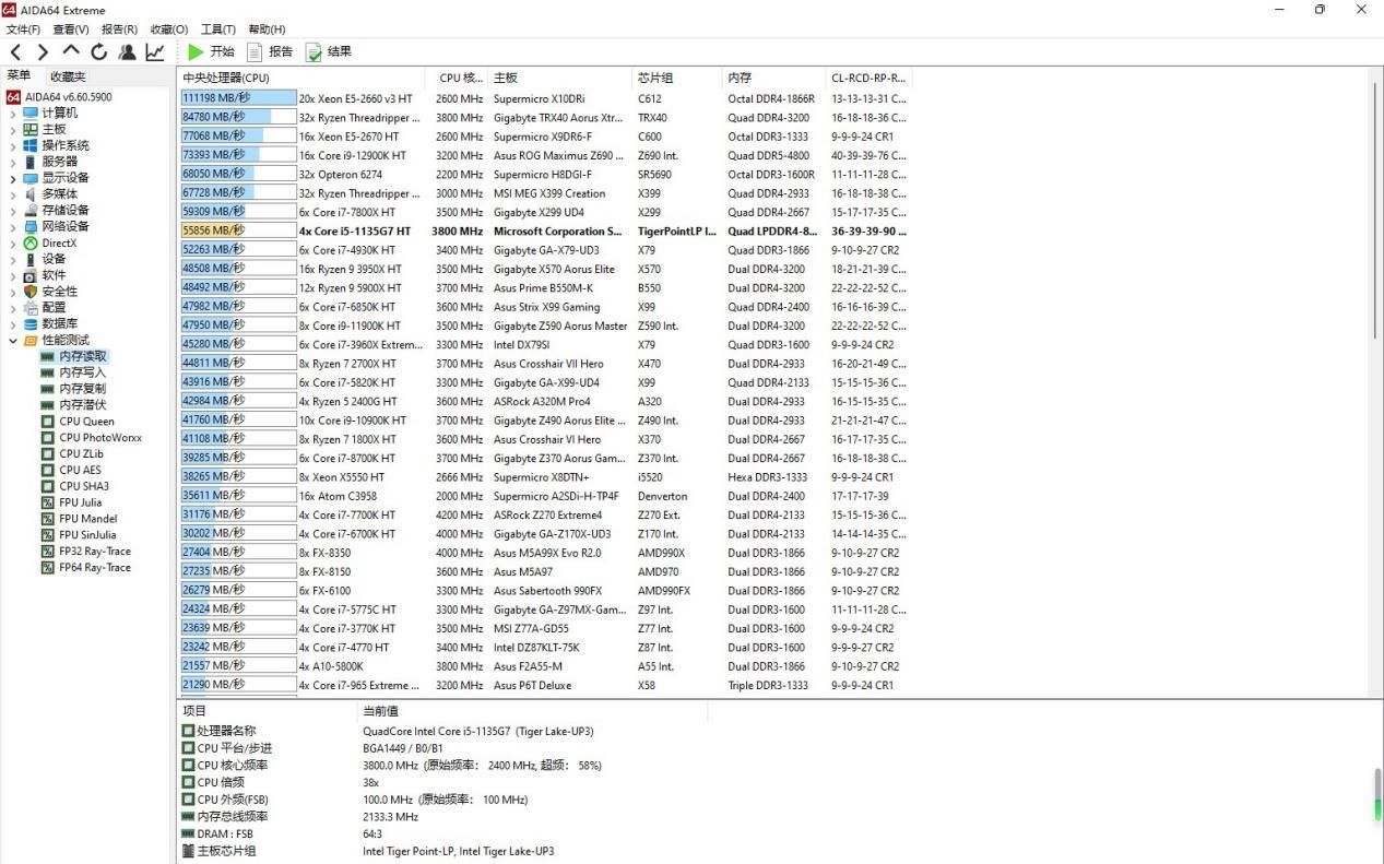 使用AIDI 64进行内存测试,读取速度为55856MB/秒,这里可以看到Surface Laptop Go2配备的双通道LPDDR4x-4267比上一代配备的LPDDR4 3733内存性能有所提升。