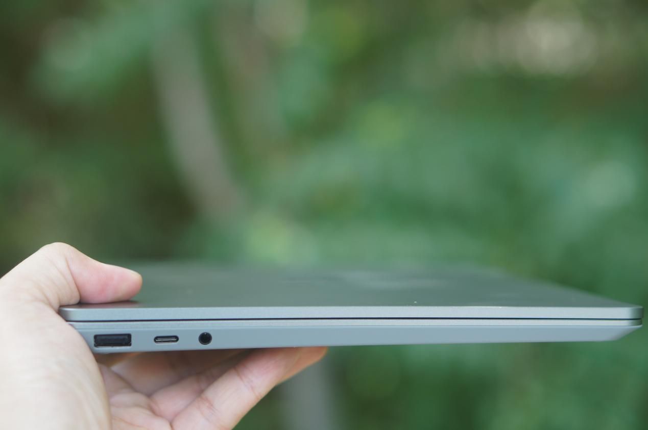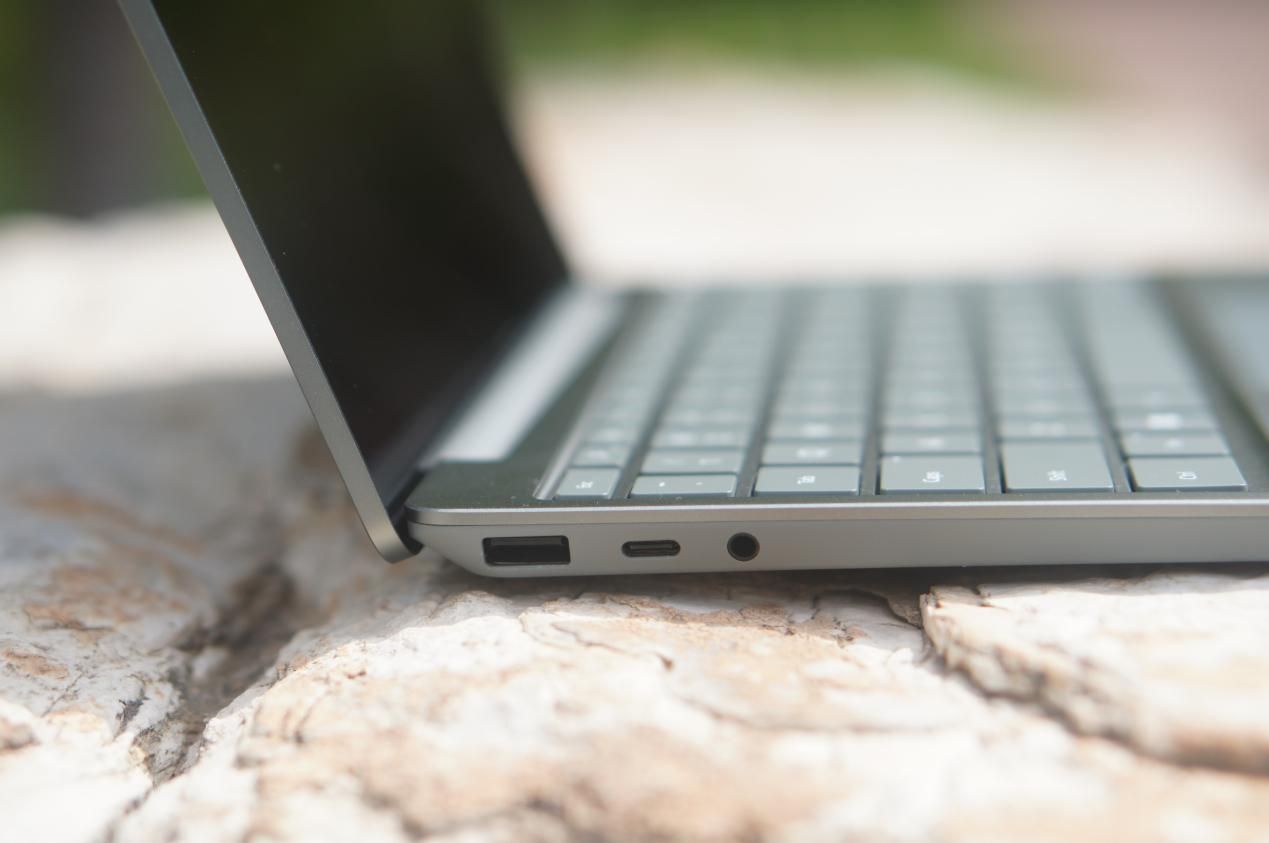 接口方面,Surface Laptop Go2大部分接口都位于机身左侧,一个标准的USB-A接口、一个USB-C接口和一个3.5mm音频接口。