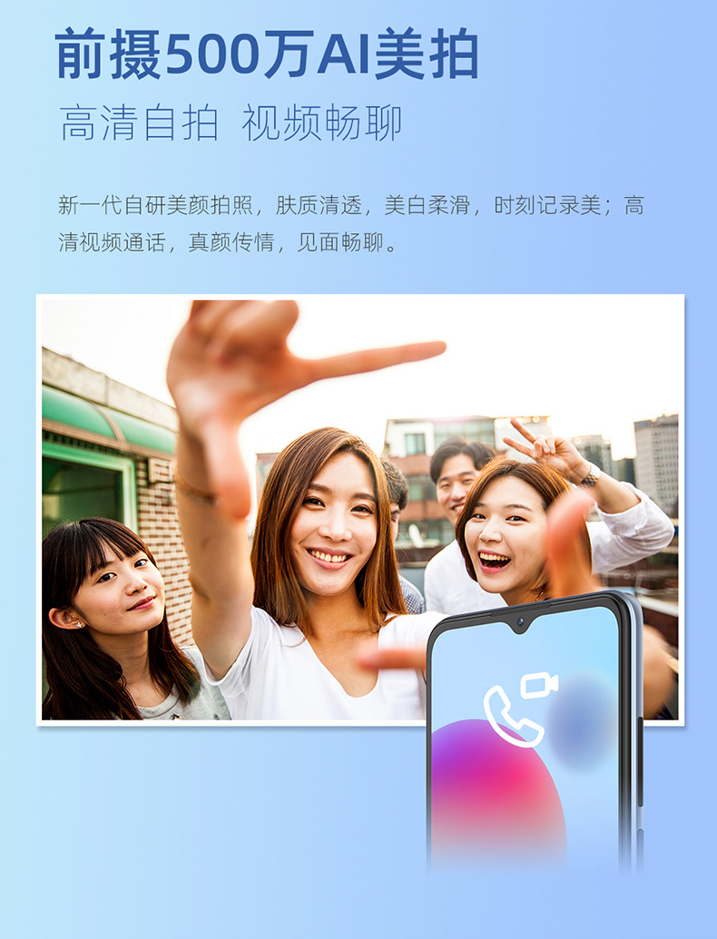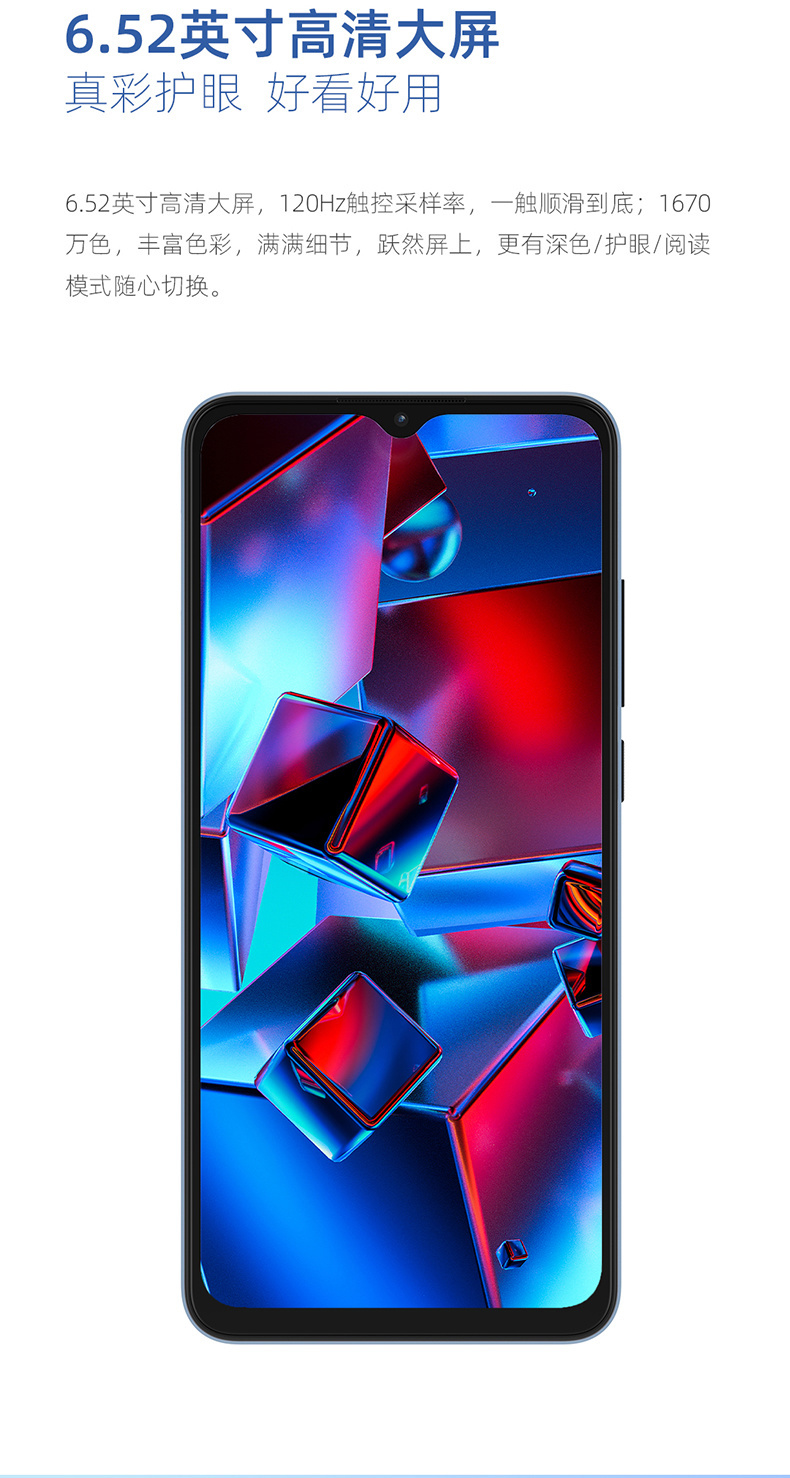 目前该机已经上架官网和京东商城等平台,唯一的 4+64GB 版本售 798 元,搭载紫光展锐的 SC9863A 芯片,采用 6.52 英寸的 LCD 屏,1600×720 分辨率,120Hz 触控采样率,后置 13MP + 2MP + 2MP 三摄,前置 500 万像素镜头。