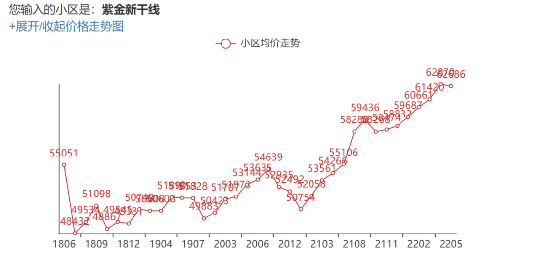 上图,紫金新干线从2020年年底的5万/平涨到如今6.2万/平,一年半20%的涨幅,妥妥跑赢大盘。