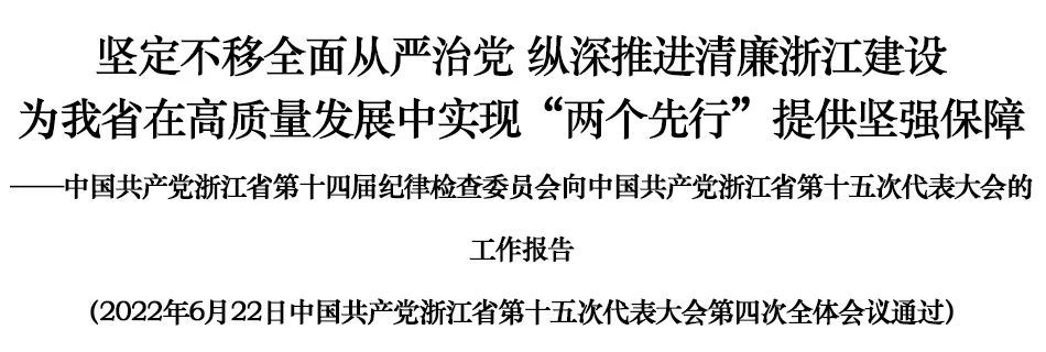 省第十四次党代会以来,省委坚持以习近平新时代中国特色社会主义思想为指导,以守好“红色根脉”的高度政治自觉坚决扛起管党治党政治责任,以清廉浙江建设为战略抓手深入推进全面从严治党,持续深化以自我革命引领社会革命的省域实践。在中央纪委国家监委和省委的坚强领导下,全省各级纪检监察机关自觉把纪检监察工作放到党中央和省委工作大局中谋划和推进,把准稳中求进的总基调,运用标本兼治的方法论,守牢实事求是的生命线,坚持走在前列的高标准,坚定不移推进全面从严治党、党风廉政建设和反腐败斗争,充分发挥监督保障执行、促进完善发展作用,为浙江忠实践行“八八战略”、奋力打造“重要窗口”、争创社会主义现代化先行省、高质量发展建设共同富裕示范区提供了坚强保障。