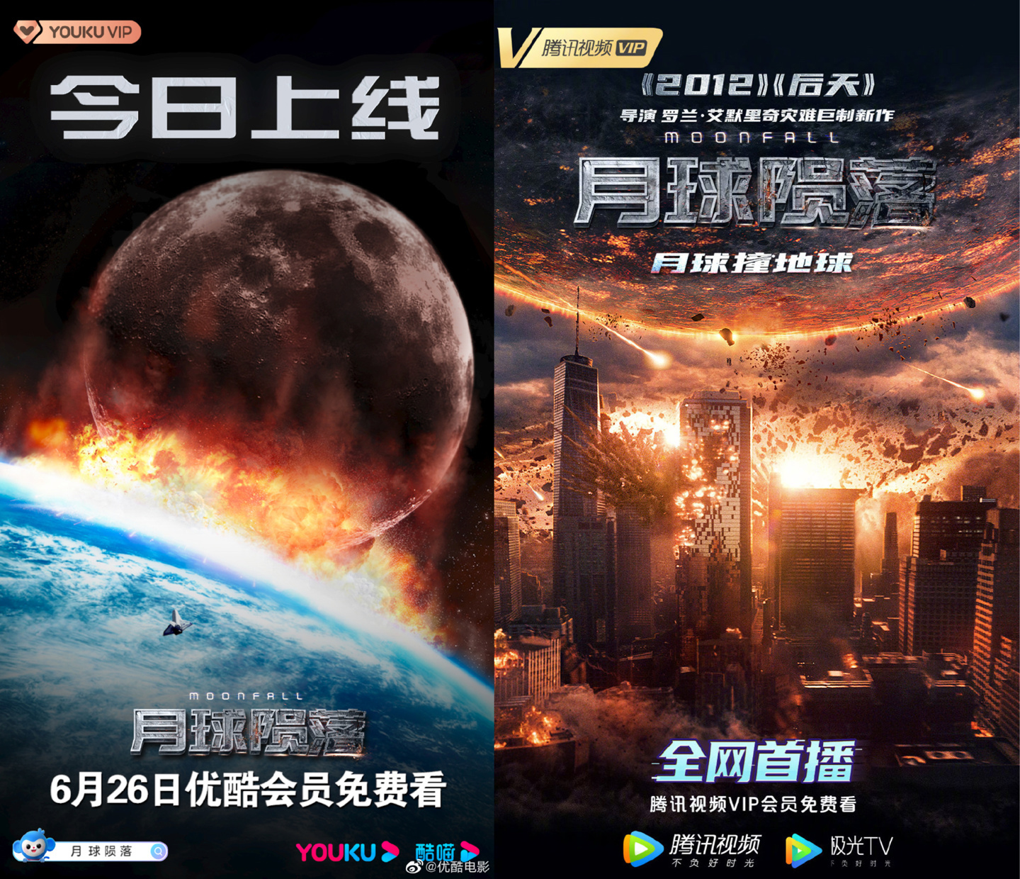 IT之家 6 月 26 日消息,据腾讯视频和优酷消息,灾难科幻片《月球陨落》今日在腾讯视频、极光 TV、优酷、酷喵等平台上线。