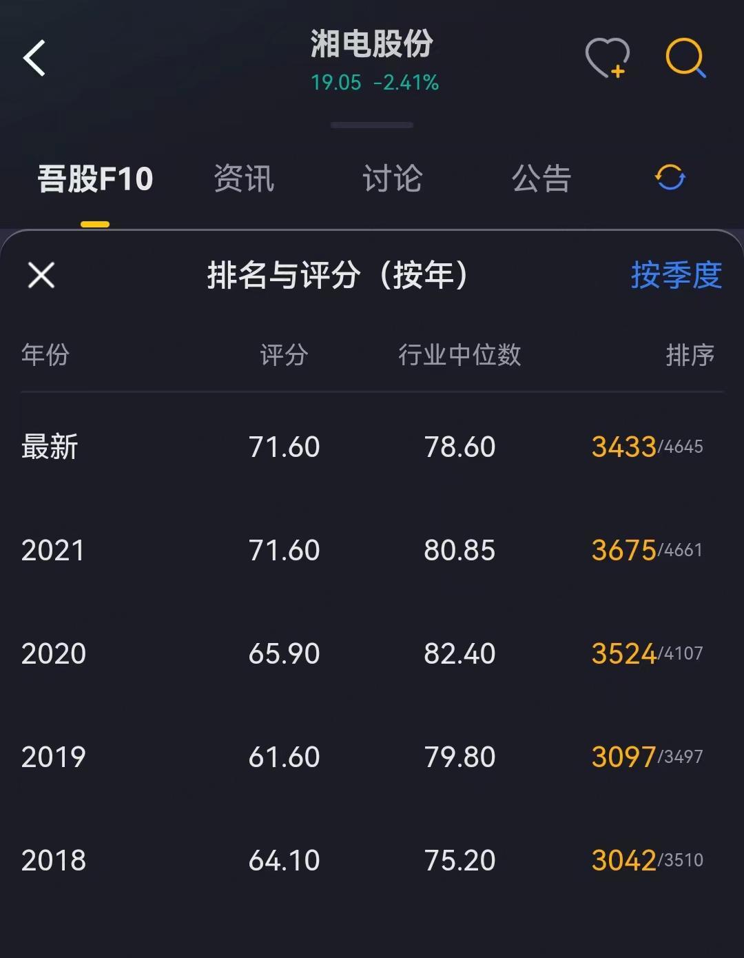 按照可能是目前最客观最公正的吾股大数据分析后的排名,2018年至今,湘电股份始终都在3000名开外。一般情况下这样的公司,如果不是为了讨好老板企图加薪,风云君都懒得看第二眼。