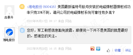 如果说这些都是老黄历的话,福建舰上的三套电磁弹射系统则足以让湘电股份的拥泵扬眉吐气!尤其是公司董秘霸气侧漏的“并不是美国的就是最好的”的回复。