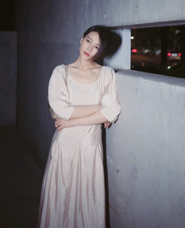 在整个画面中,纤瘦的高圆圆锁骨部分格外突出,充满了骨感之美,纤长的脖颈让整个人的气质犹如超凡脱俗般清新,贴身的长裙将她的身材勾勒的凹凸有致。