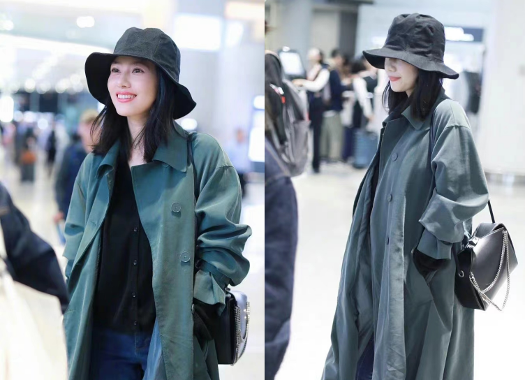 在高圆圆产后的首次机场照中,她的一身装扮极为简约低调,黑色大帽檐的渔夫帽几乎遮住了大半张脸的面容,一袭墨绿色风衣给大气的高圆圆增添了几分帅气,搭配黑色皮质链条斜挎包,整个人十分高级,可以看出产后的高圆圆状态很好,笑容明媚且灿烂。