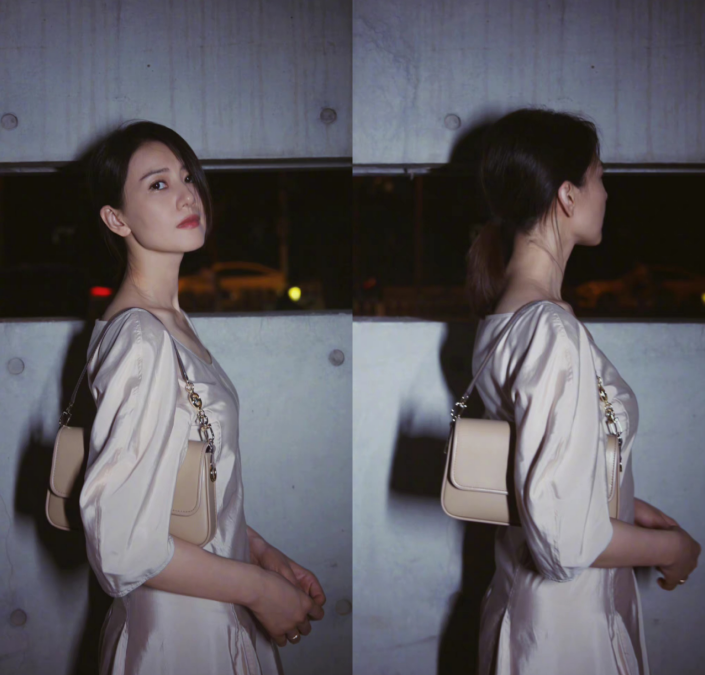 在高圆圆本次晒出的照片中,着装的风格和她本身的温婉大气长相相符合,一袭米色长裙,长裙柔软光滑的布料好似闪闪发光,同色系的斜挎包夹在腋下,俨然是一副知性的温婉女性形象。