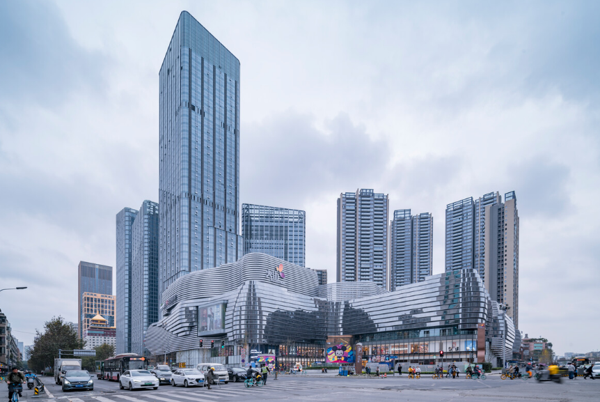 云,则象征成都千年中心之高度,建筑本身俯瞰一环,站在城央将城市繁华尽收眼底,又同时寓意在此生活宛如“置身云端”之悠闲安逸。
