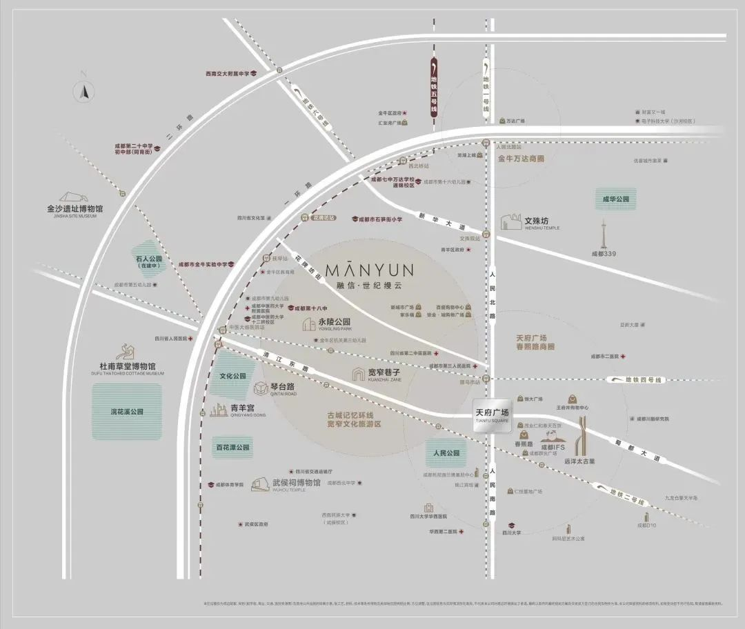 一环,成都这座城市的中心之心,城市文化从这里繁兴,城市资源在这里汇聚;西一环更是堪称成都的源点、天府的图腾、蓉城的灵魂,融信·世纪缦云便坐落于西一环,金牛区交通巷,占据城市核心区域。