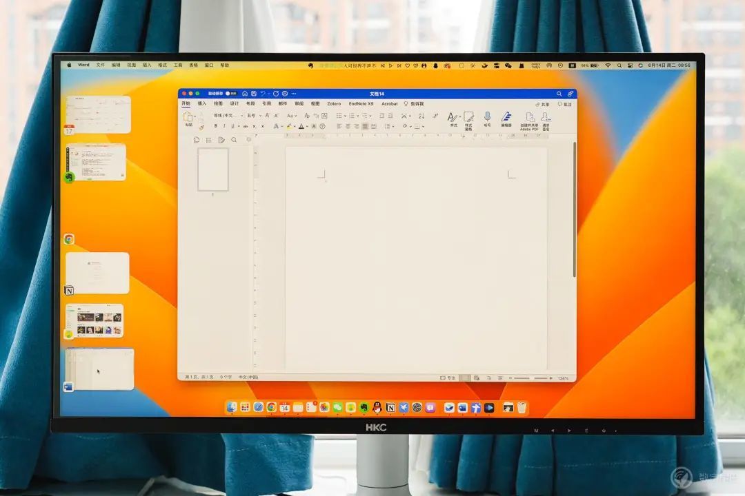 并且,针对已打开的同一软件的多个窗口,比如 10 个 word 文档,Mac 会将其归类在一起,通过一次次的点击,可以更改文档显示的优先级。其次是隐藏,除了正在使用的窗口会保留,其余已打开的窗口全部会收缩并以缩略图的形式展示在屏幕左侧,我们可以选择缩略图始终显示,也可以选择自动隐藏,就像 Windows 系统自动隐藏任务栏一样。放在桌面上的文件、文件夹等也同样会被隐藏,这样我们就会得到一个纯粹的,简洁的,唯一显示在桌面上的窗口。这个突出显示在前端的窗口默认会占据大约五分之三的桌面空间,其余的五分之二是窗口缩略图和留白。