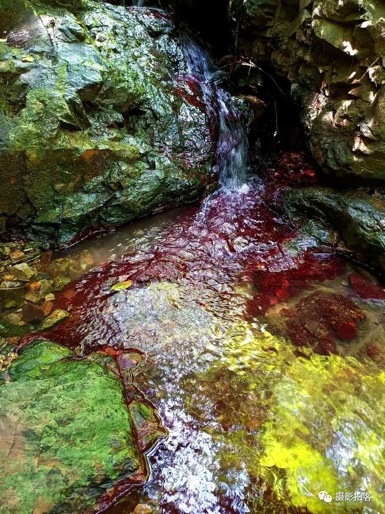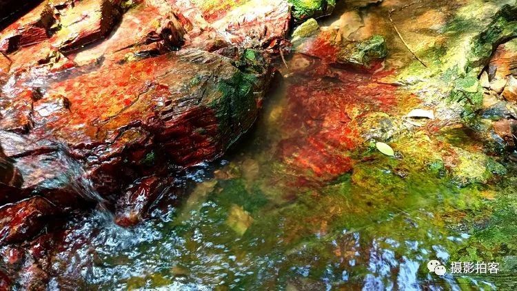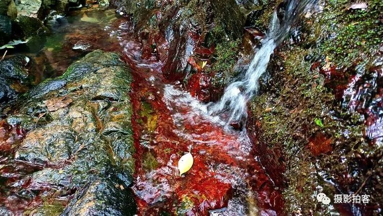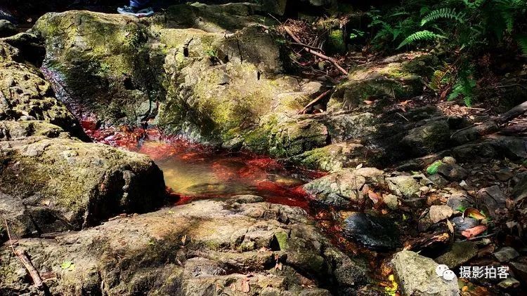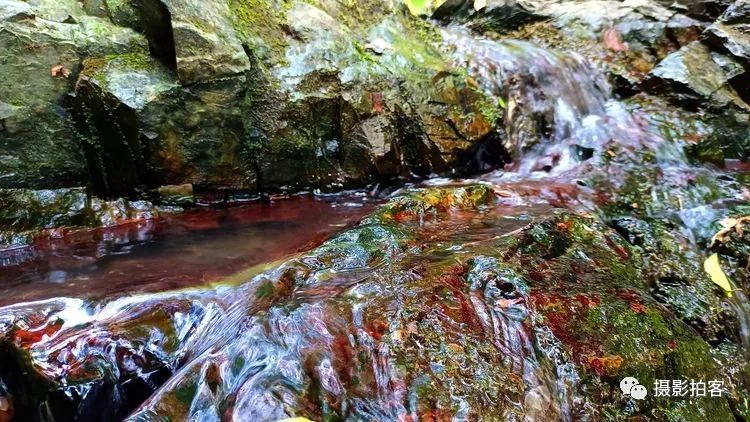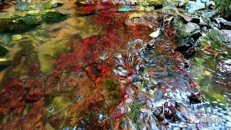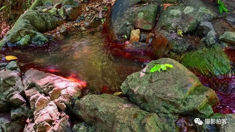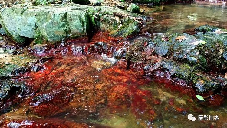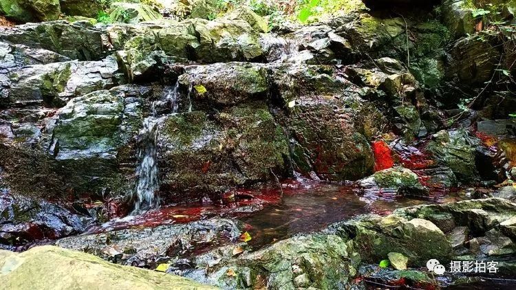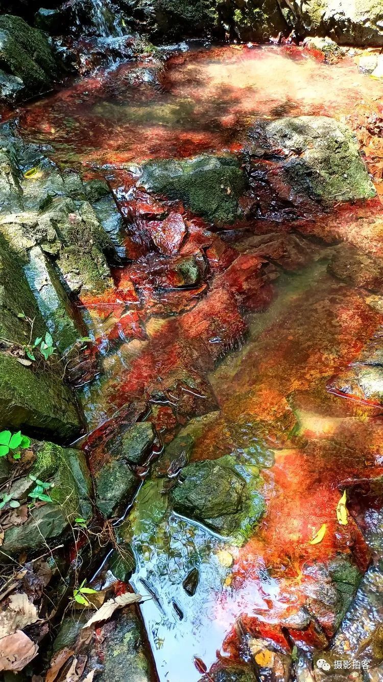 在紫金山的西北方向有几条山中溪谷,也许是因山水及土壤中含有某些矿物质在湿度、温度、环境气候适宜的情况下,自然形成红色的藻类物质附着在石头表面,被登山的人们称为“红石谷”而成为近时的网红之地,在紫金山中又多了一道靓丽的风景线。
