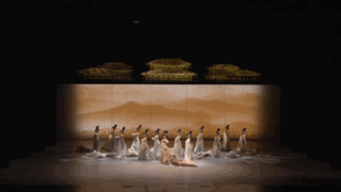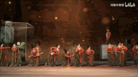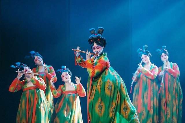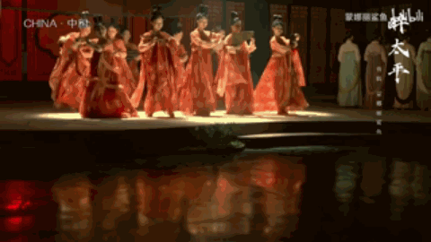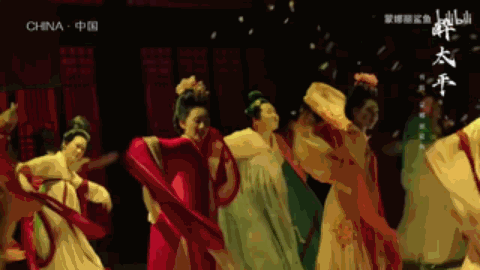 还有吹笛女旋转独舞的镜头,《梦华录》中场上三名舞妓,中间的吹笛女跳跃而出,全程没有将笛子离开嘴边,其余两名舞妓立刻离开。而《唐宫夜宴》中全场所有舞蹈演员都静态不动注视着吹笛女,吹笛女却更像是将笛子作为舞蹈道具,只顾拿着它做一些高难度舞蹈动作。