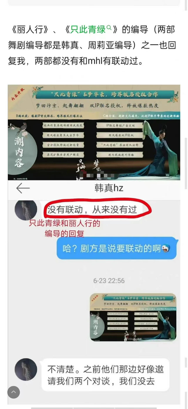 这似乎就证实了《梦华录》在未获得郑州歌舞剧院的许可下,借鉴了《唐宫夜宴》的舞蹈。网友又再添一把火,表示《梦华录》此前声称与《只此青绿》的联动也是假的,原作编导回应并没有与剧方合作。