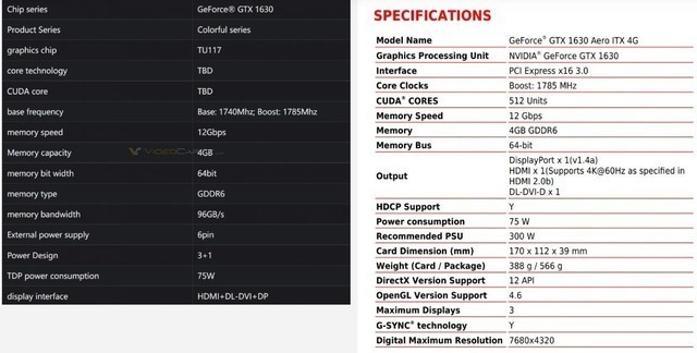 近日,外媒VideoCardz爆料,在推出GeForce GTX 1650三年多后,NVIDIA现在正在推出其入门级的图灵桌面显卡。名为GTX 1630的型号将占据2022年阵容的最低层,只有512个CUDA核心。这种配置现在已经得到了七彩虹和微星的确认,因为两家公司都已经在其网站上列出了即将推出的显卡。