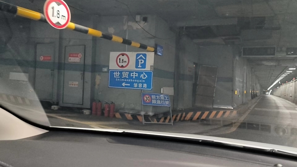 每个可以进入的停车场,在环道中都有路牌标示,上面不仅写着停车场的名字,还有相对应可以到达的街道、路段的名字。对于本地人来说,去往的地段大致是可以判断的,但对于只能依靠导航找路的外地人,在完全没有参照物的地下隧道中,一块路牌显然是无法精确制导的。