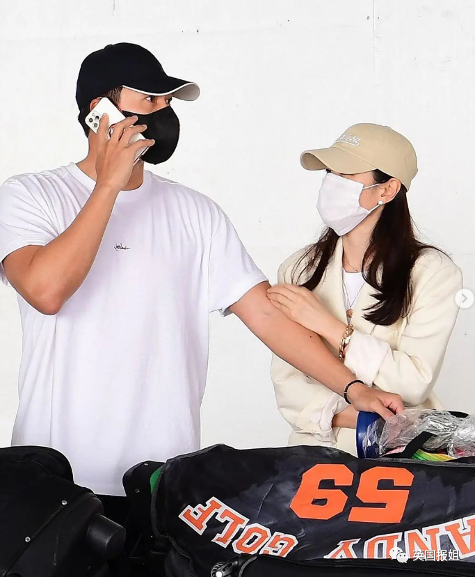 孙艺珍的行李里还带了高尔夫袋,看来夫妻俩对高尔夫的热爱在蜜月里也不停歇。