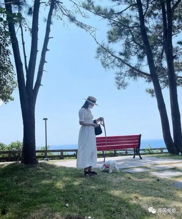 上个月,她在社交平台上发了两张带着爱犬散步的日常照片,一袭白裙,清新素雅,显得非常温柔。