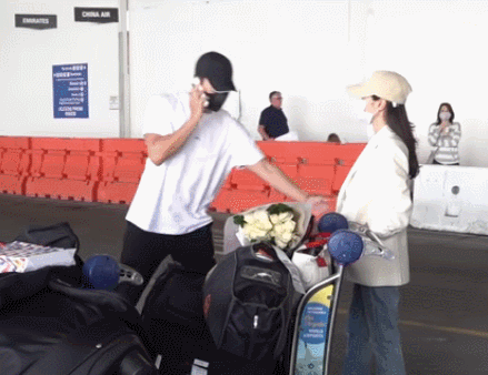 他俩出国蜜月时,在机场是分开走的,回韩国时终于在一起了,是路人拄着拐棍也要停下来围观的程度。
