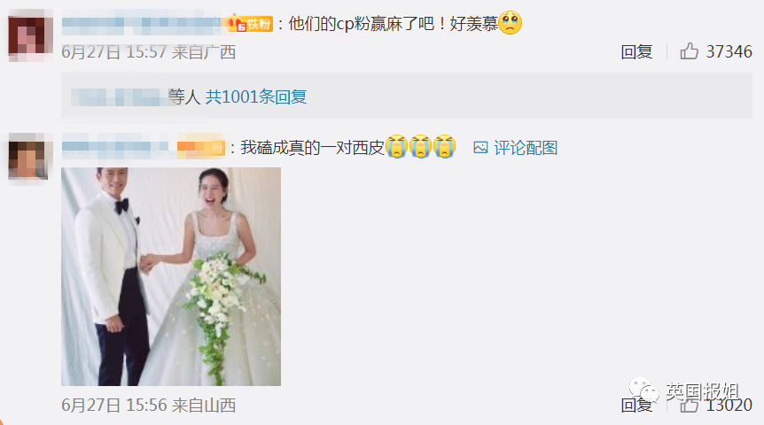 就连吃瓜网友都忍不住为他们开心,顺便幻想一下:这两位神仙颜值的父母生出来的孩子,得多漂亮啊?!