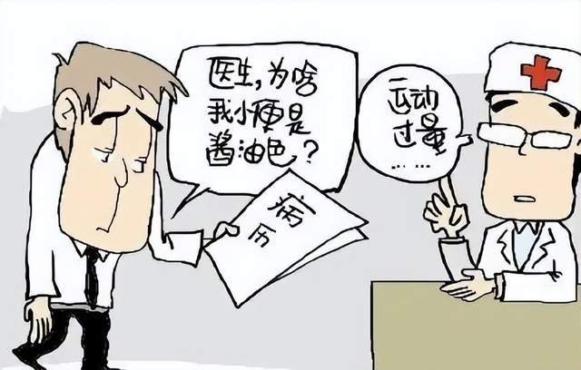 人在剧烈运动时易发生横纹肌溶解,肌红蛋白大量释放会导致尿液颜色变深变红,甚至呈现酱油的颜色。