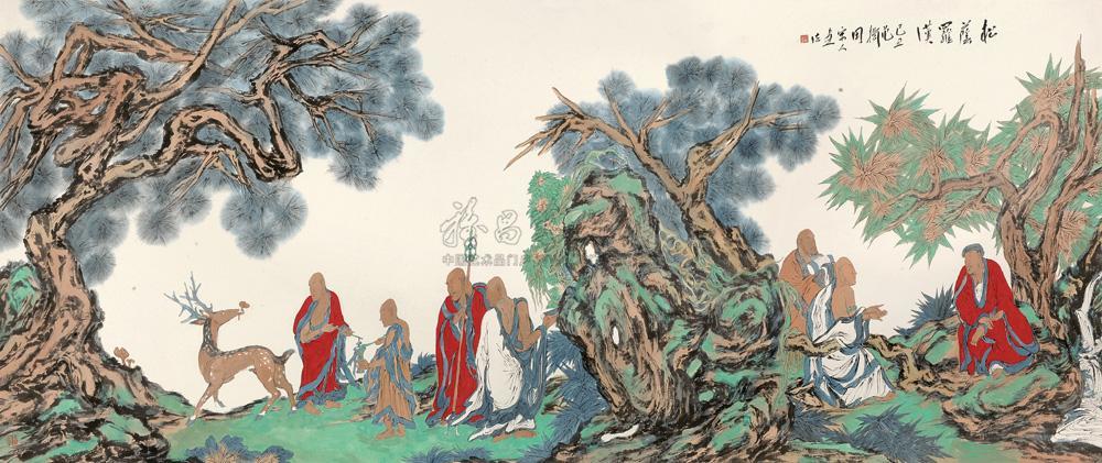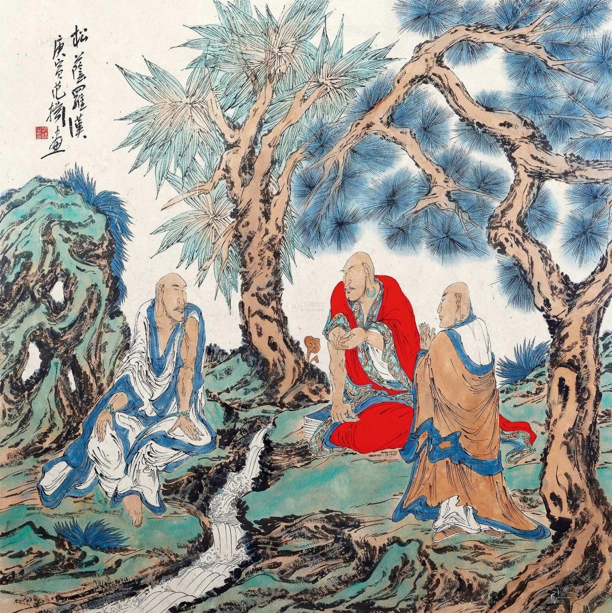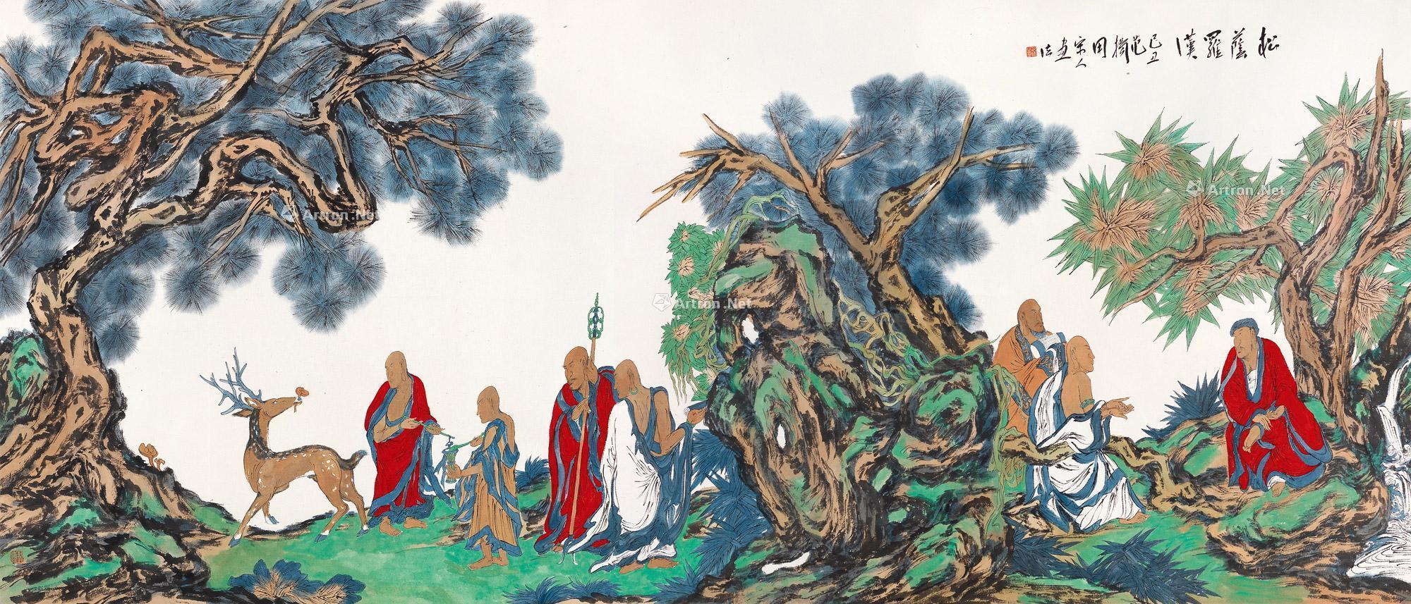 拍品名称:范扬 2009年作 松荫罗汉图 镜心