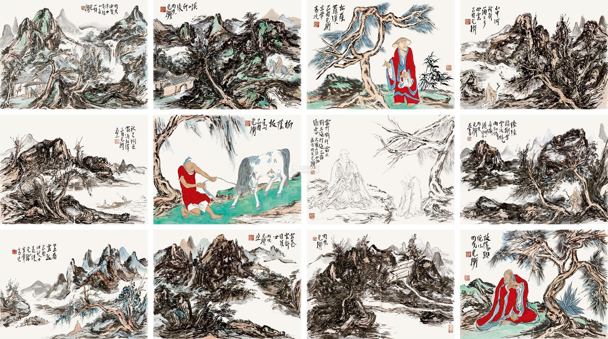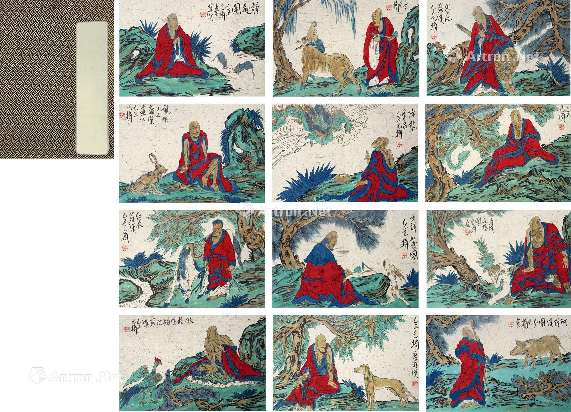 拍品名称:范扬 十二生肖罗汉图册页 册页
