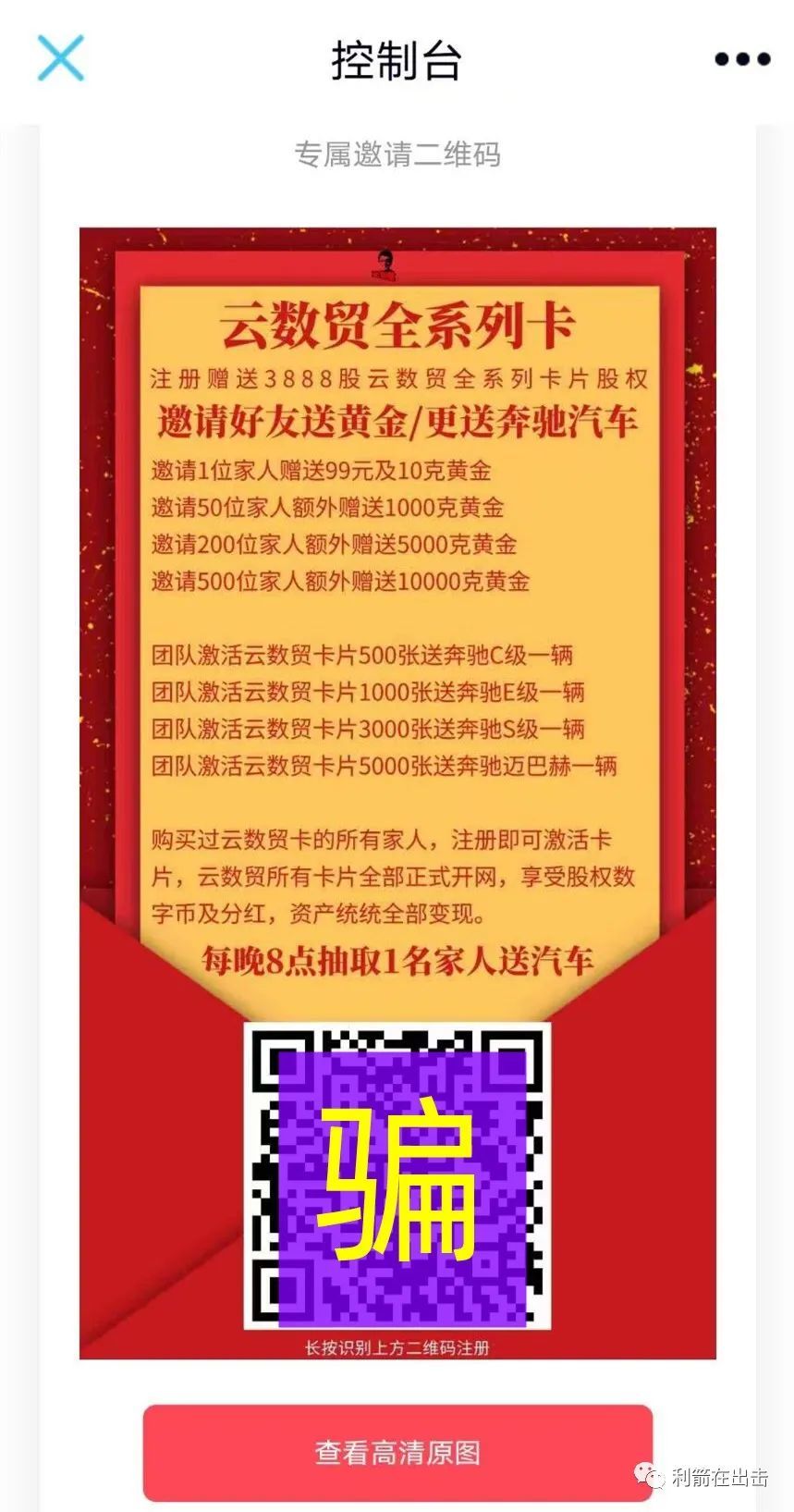 这也是冒充“云数贸张健”的套牌骗局,目前正在火爆之中,“注册就送3888股权,价值1.36亿元”的噱头,忽悠了不少中老年人在上传资料,去交钱。