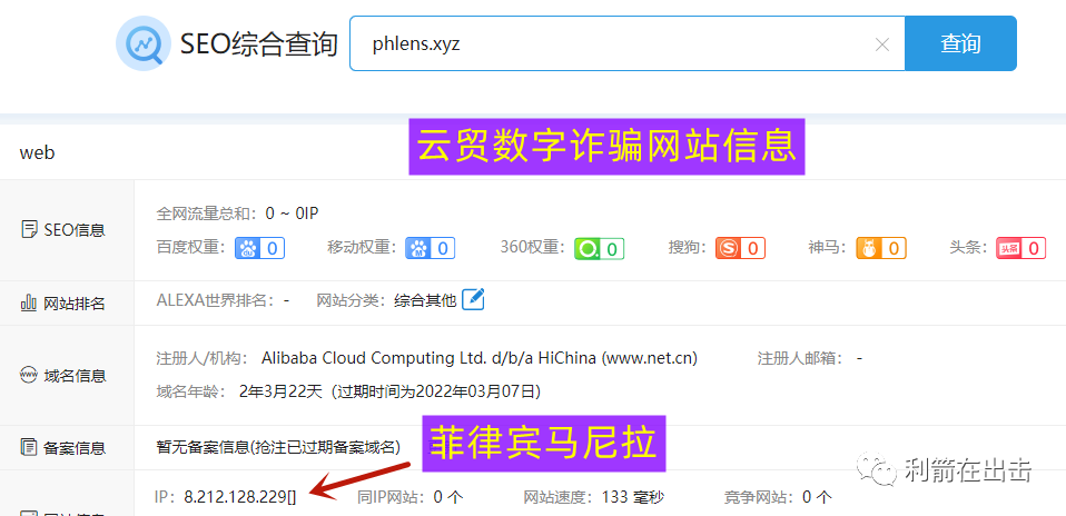 根据注册的链接,查到网站服务器在菲律宾马尼拉