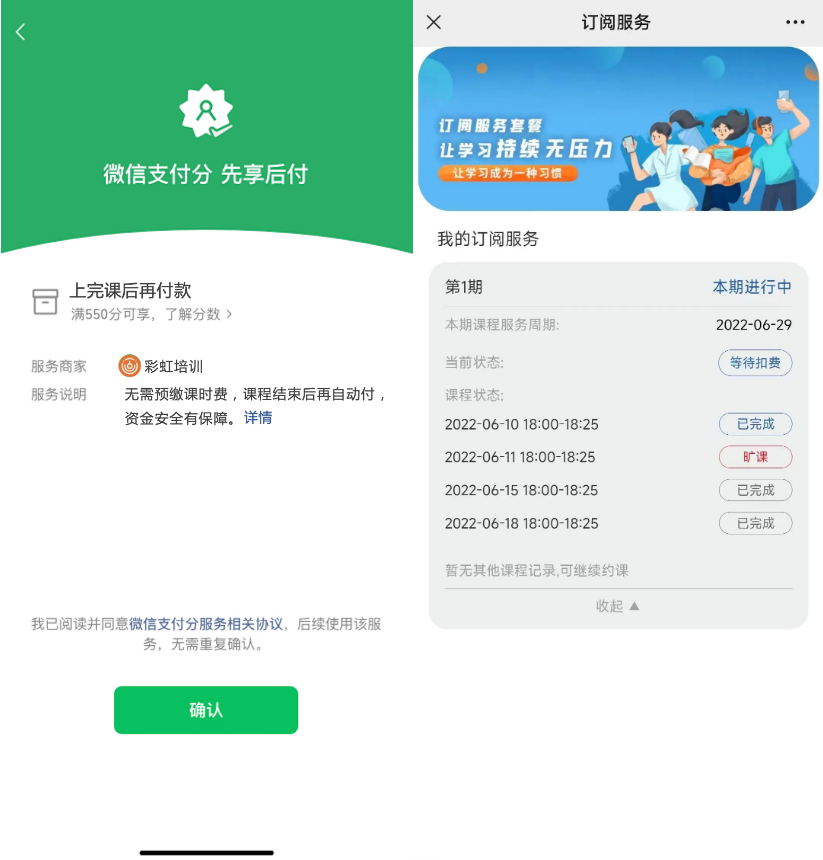 “教培服务工具箱”还支持微信支付分“先学后付”功能,并集成腾讯电子签能力,能减少学员退费纠纷,保障学员、家长、机构、平台等多方权益。