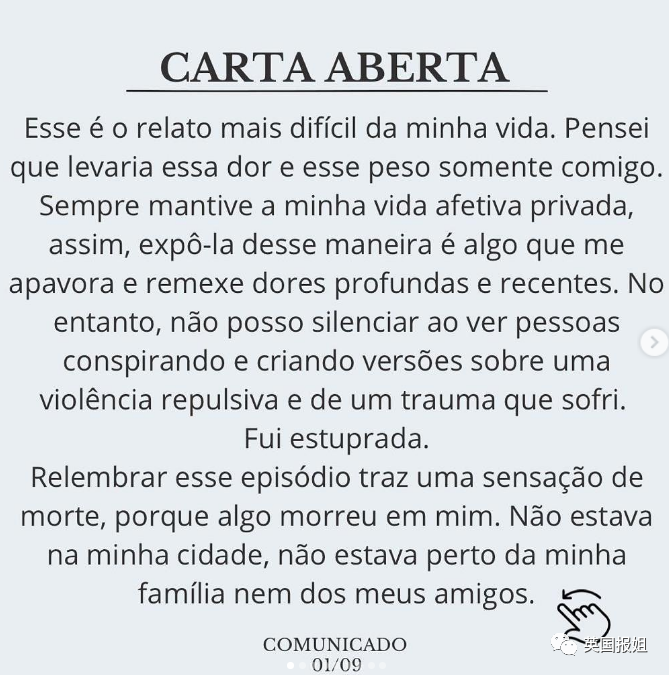 这件事最初是从一名男记者开始的,6月16日,巴西记者Leo Dias在接受一个节目采访时表示,他最近几周遇到了职业上的困境,不知道该不该发表关于女演员的报道。