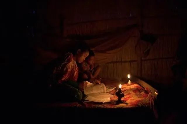 ▲只能点蜡烛学习的飞地孩童