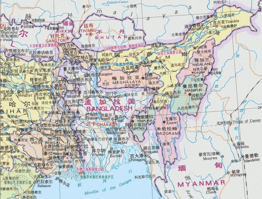 ▲孟加拉东部与印度东北6邦接壤