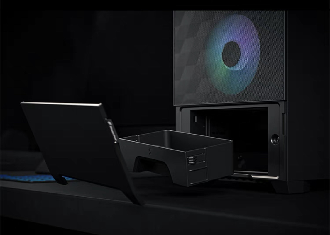 据介绍,Pop Air 以通风作为优先考量,将精密工程与动态设计融为一体,并提供色彩斑斓的不同主板背板选择、硬盘托盘和精心设计的外观。Pop Air 的最大亮点是采用蜂窝网状的前面板,这为通风提供了充足的潜能,机箱正面还有一个巧妙隐藏的储物抽屉,可收纳桌面杂物或替换为两组光驱空间。