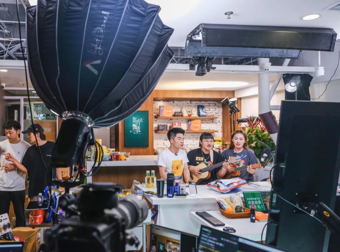 6月20日清晨6点40分,中关村e世界新东方在线所在楼层的几百个工位还在沉睡,东南角的东方甄选直播间却亮如正午。直播间约20平方米,直拍镜头拍不到的地方,枸杞、海鸭蛋、饮料、书等商品几乎从两个4层的货架上溢出来。两台高清摄像机负责捕捉中景和特写,3名导播一动不动地盯着面前的显示屏。