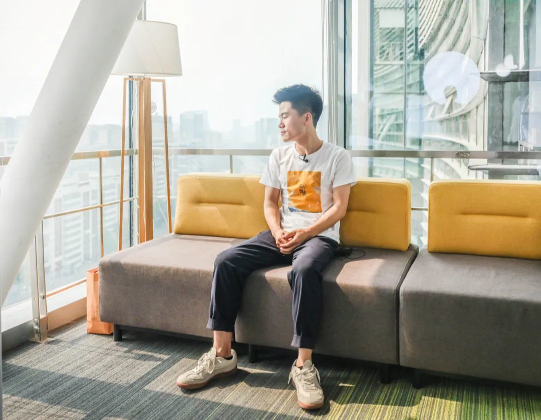 董宇辉坐在办公室的一角,侧身望向窗外。几分钟前,他刚接受了一家媒体的专访。据现场工作人员提示,5分钟后他还要接受三家媒体的访谈。新京报记者 赵亢 摄