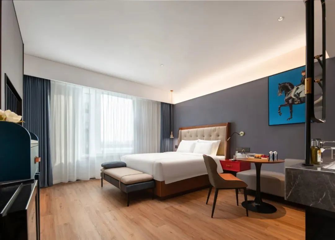 西姆望山栖轻居重庆上清寺酒店丨酒店地处重庆渝中区上清寺街道交通枢纽,客房色调由象牙白、高级灰、莫兰迪蓝搭配而成,将轻奢极简风发挥到极致,提供自在、放松的居停空间。