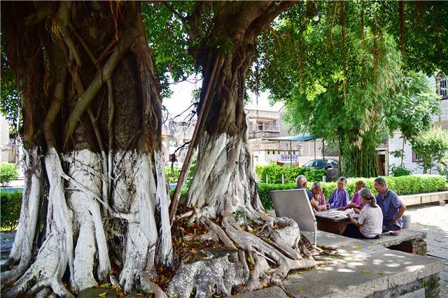 打牌的老人看到我们在拍摄灵芝,就七嘴八舌地告诉我们关于灵芝的故事。一名今年80多岁的老人说,榕树长灵芝至少已经有上百年历史了,他懂事的时候就长,父亲告诉他已经长了很多年了。原来有三个地方长,后来一个地方不长了,就剩下两个地方还长。长出的灵芝大小重量不等,最大的一株有2斤多重。