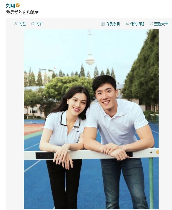 半年后,2016年1月9日,刘翔和初恋女友、撑杆跳运动员吴莎宣布恋爱。