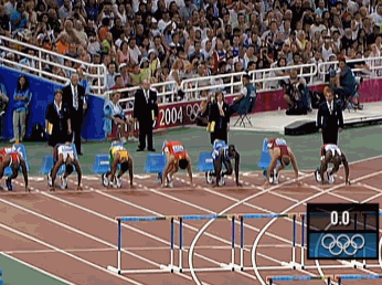 “比赛开始!刘翔的起跑非常的顺,他目前排在第一位,旁边的是特拉梅尔,奥利加尔斯,刘翔!处于领先的位置,刘翔!刘翔!刘翔赢了!刘翔赢了!”