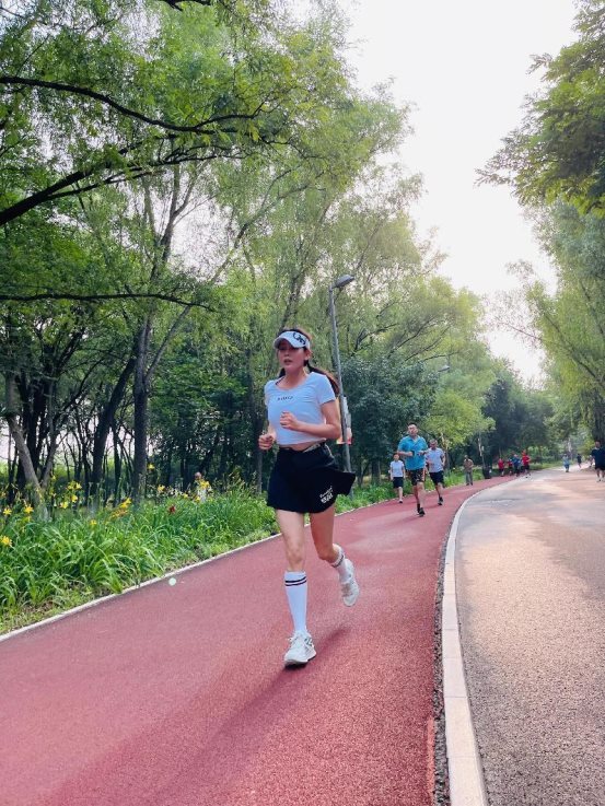 她说,跑步是最受益的健身项目,跑步可以增强新陈代谢,增强免疫力,增强心肺功能,降低体脂率,让身体分泌多巴胺、内啡肽、血清素,同时锻炼耐力和毅力,收获健康和快乐。在跑团她学到跑步里除了技巧和姿势,跑前跑后拉伸也很重要,专业训练进步更快,平时的核心训练都很重要,这是她由衷地分享。
