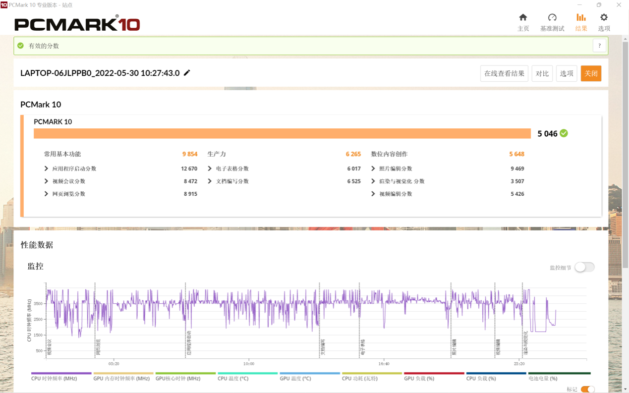 而在同样展现日常办公性能的 PC Mark10 中,也得到了 5046 分的分数,可以说码字修图做文档这些都不在话下。